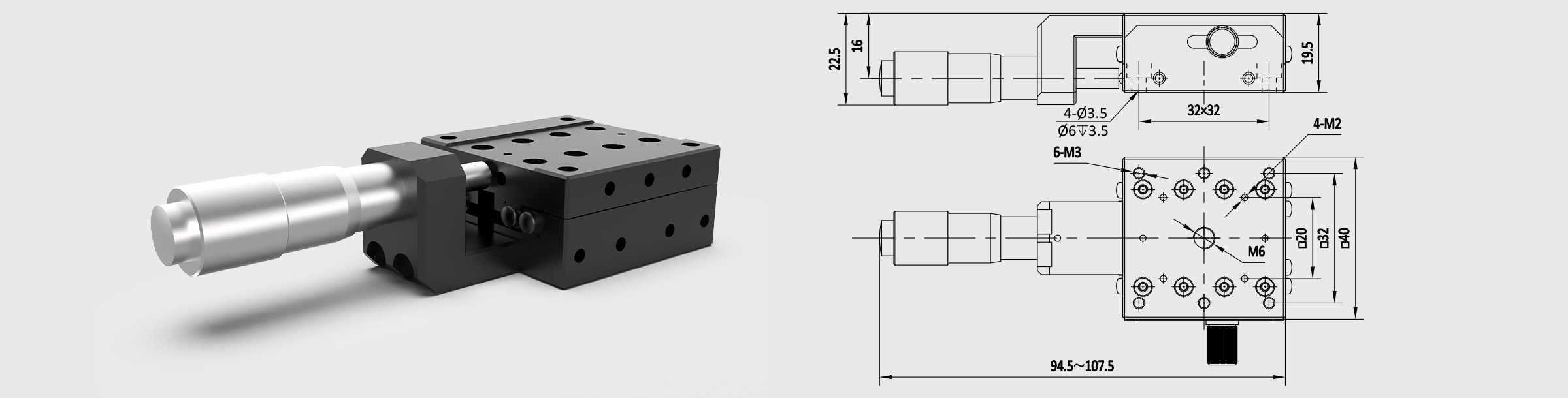 台面40x40mm 行程13mm 竖直驱动 单轴精密位移台