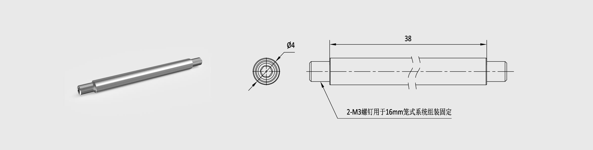 新品 Φ4mm笼式安装接杆 长38mm 螺纹孔M3