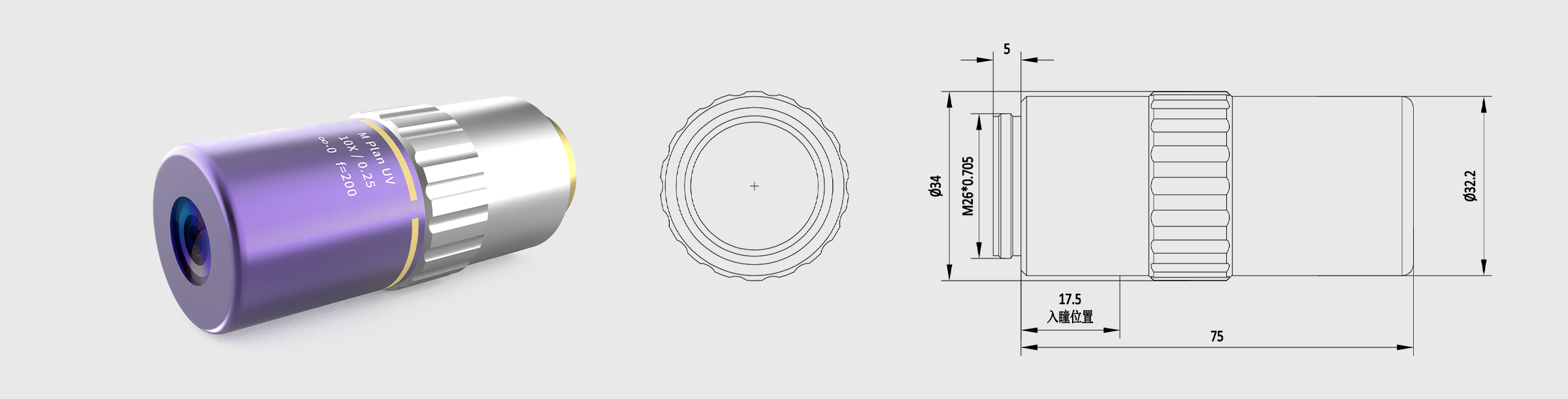 | 10 | 镜头尺寸 | Φ34×L 75mm | |