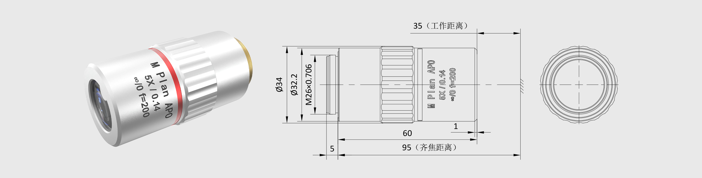 新品 无磁显微物镜 5× M Plan Apo 钛合金