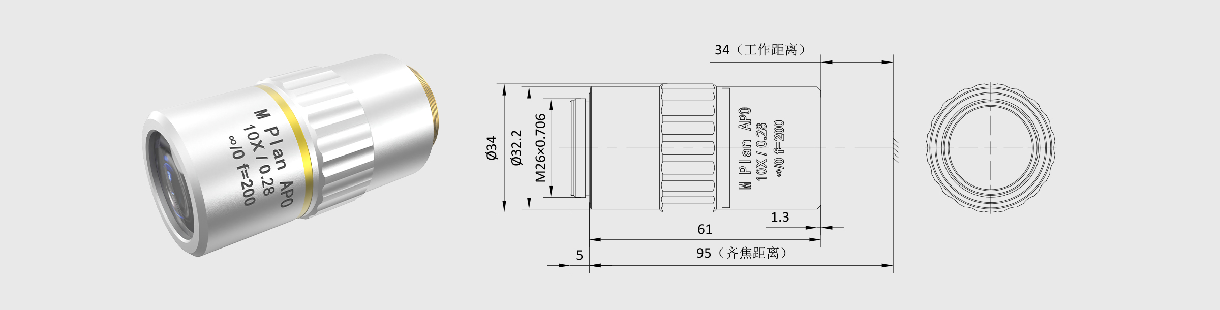 新品 无磁显微物镜 10× M Plan Apo 钛合金