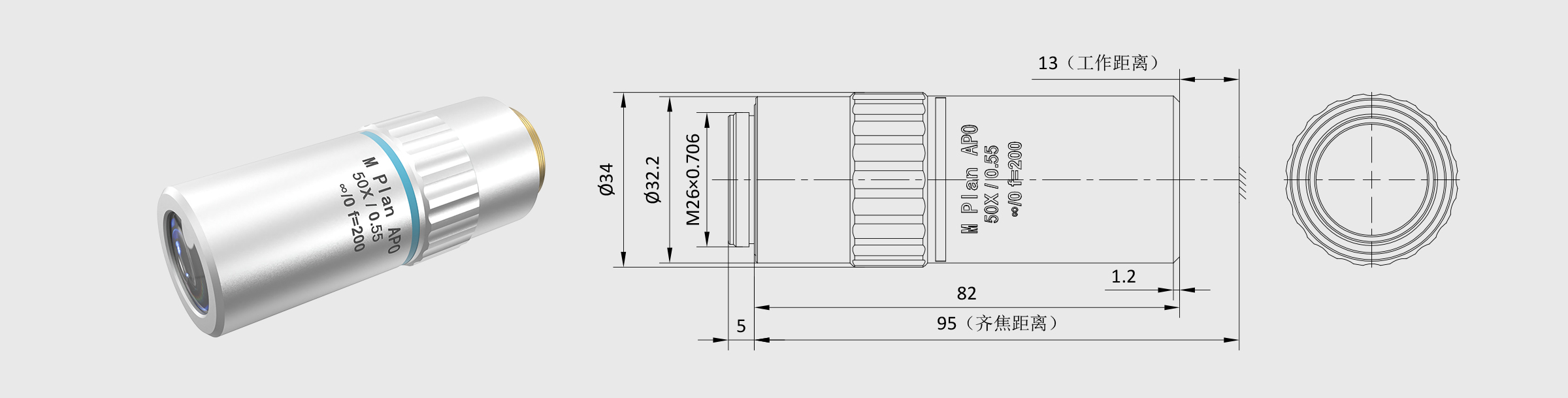 新品 无磁显微物镜 50× M Plan Apo 钛合金
