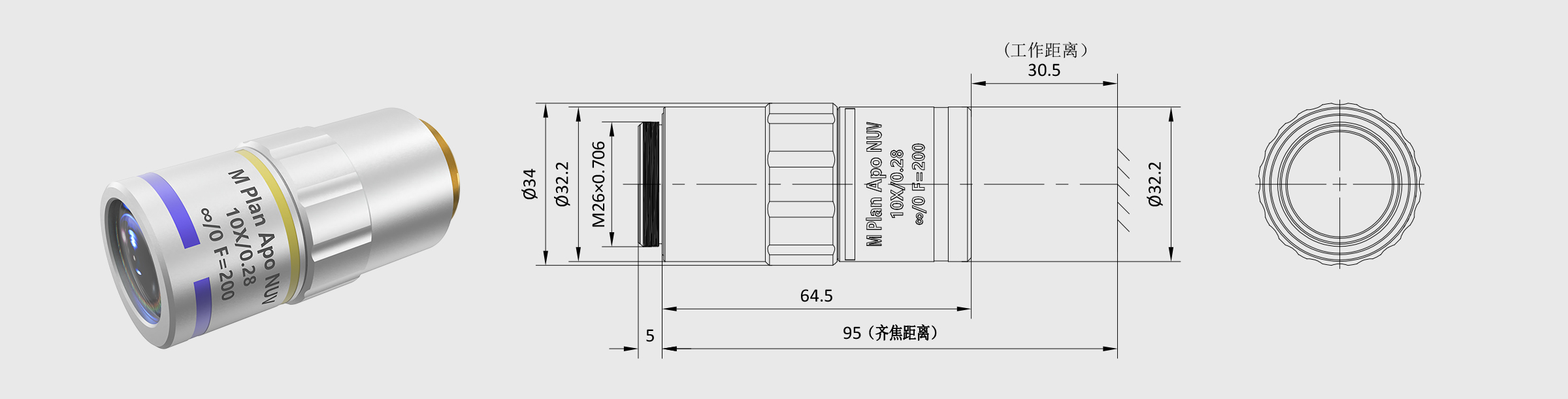 | 10 | 镜头尺寸 | Φ34×L 64.5mm | |