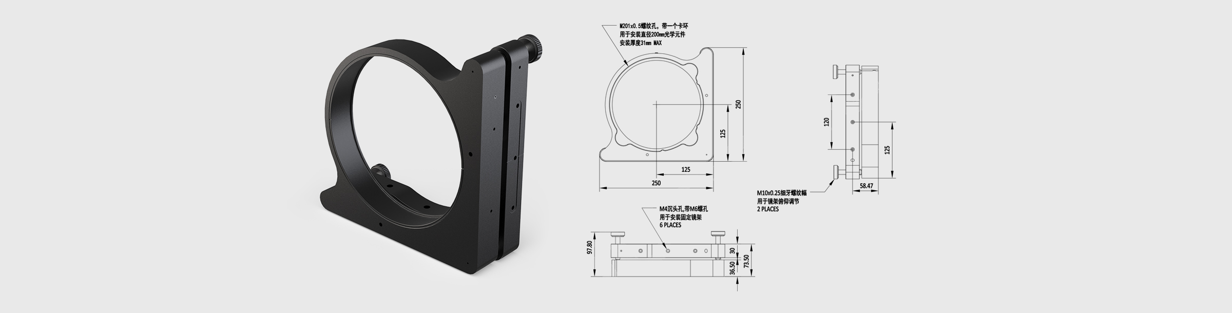 新品 大尺寸光学调整架 夹持尺寸200mm 压圈固定 两轴调节