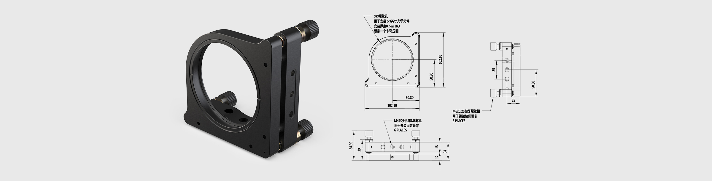 新品 大尺寸光学调整架 夹持尺寸76.2mm 压圈固定 三轴调节