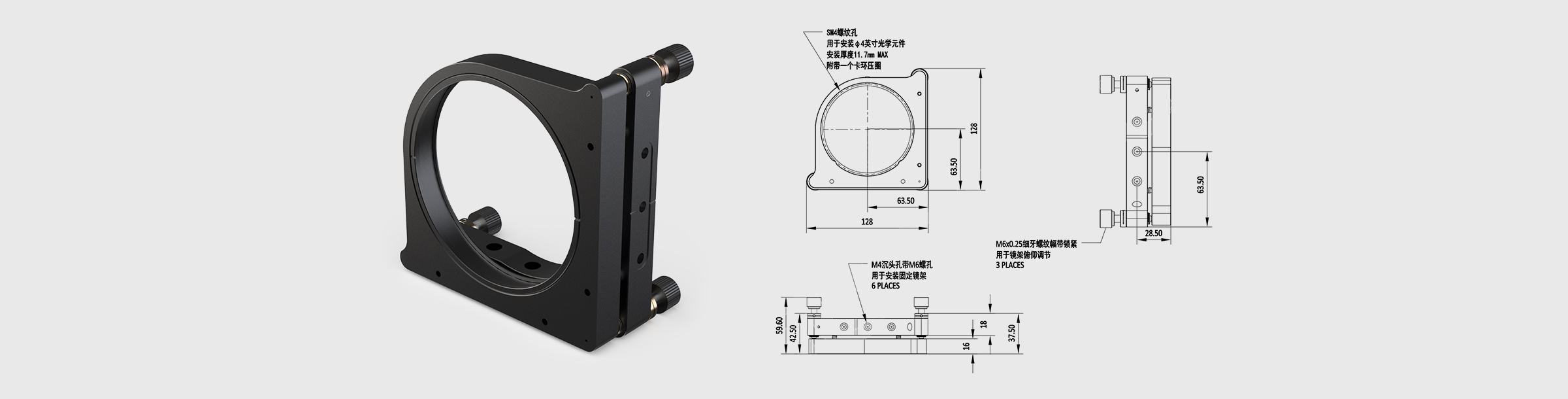 新品 大尺寸光学调整架 夹持尺寸101.6mm 压圈固定 三轴调节