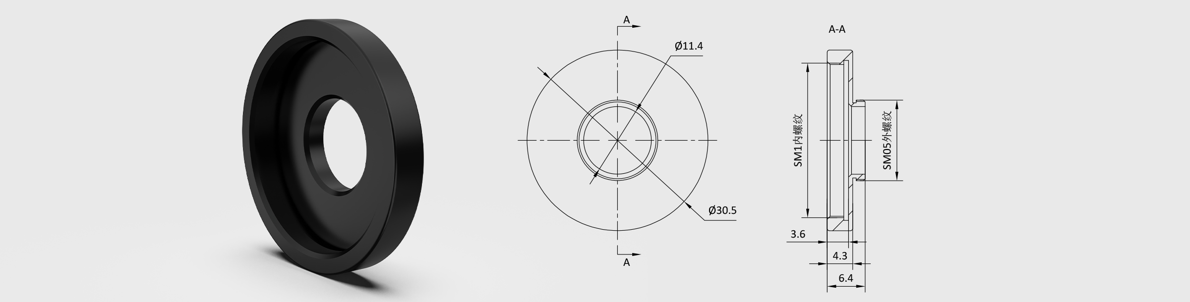 联合光科提供各种螺纹规格的内、外螺纹转接,材质为6061-T6铝合金,表面做黑色阳极氧化处理,可以在减少杂散光反射的同时增加螺纹的使用寿命。