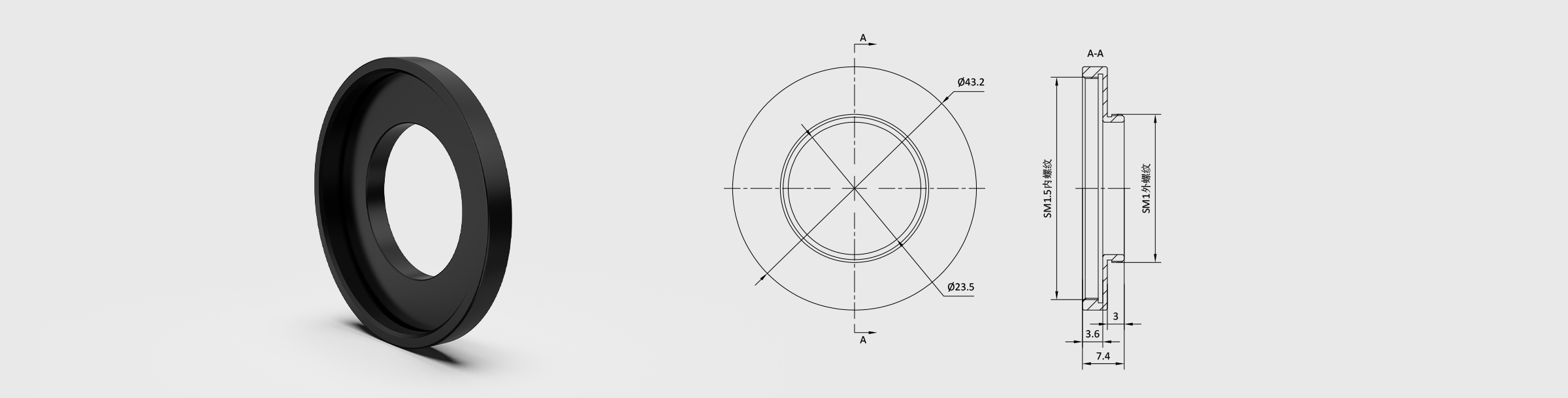 螺纹规格 外螺纹SM1 内螺纹SM1.5