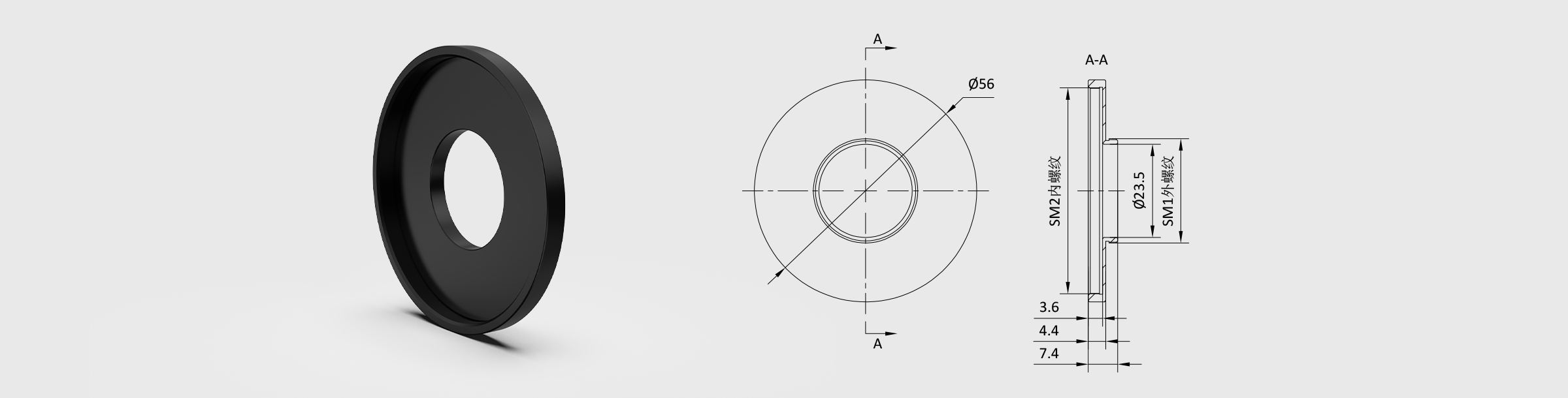 联合光科提供各种螺纹规格的内、外螺纹转接,材质为6061-T6铝合金,表面做黑色阳极氧化处理,可以在减少杂散光反射的同时增加螺纹的使用寿命。