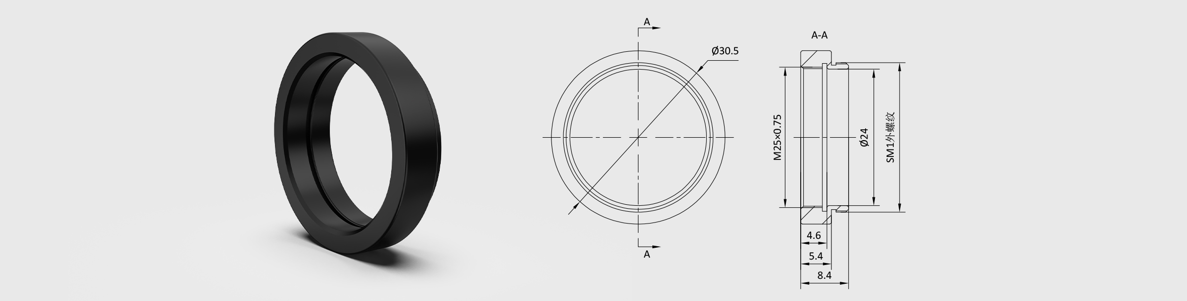 联合光科提供各种螺纹规格的内、外螺纹转接,材质为6061-T6铝合金,表面做黑色阳极氧化处理,可以在减少杂散光反射的同时增加螺纹的使用寿命。