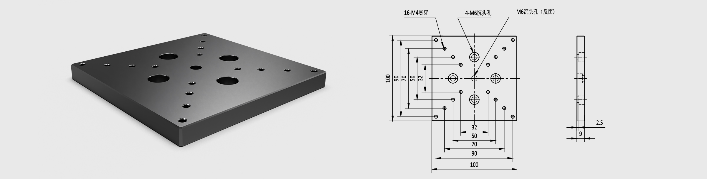 联合光科的位移台转接板主要解决现有位移台安装孔位跟光学平台不能直接安装的问题。由于位移台小尺寸和结构的制约,未配备M6安装底孔的位移台可通过转接板将位移台装在光学平板上。