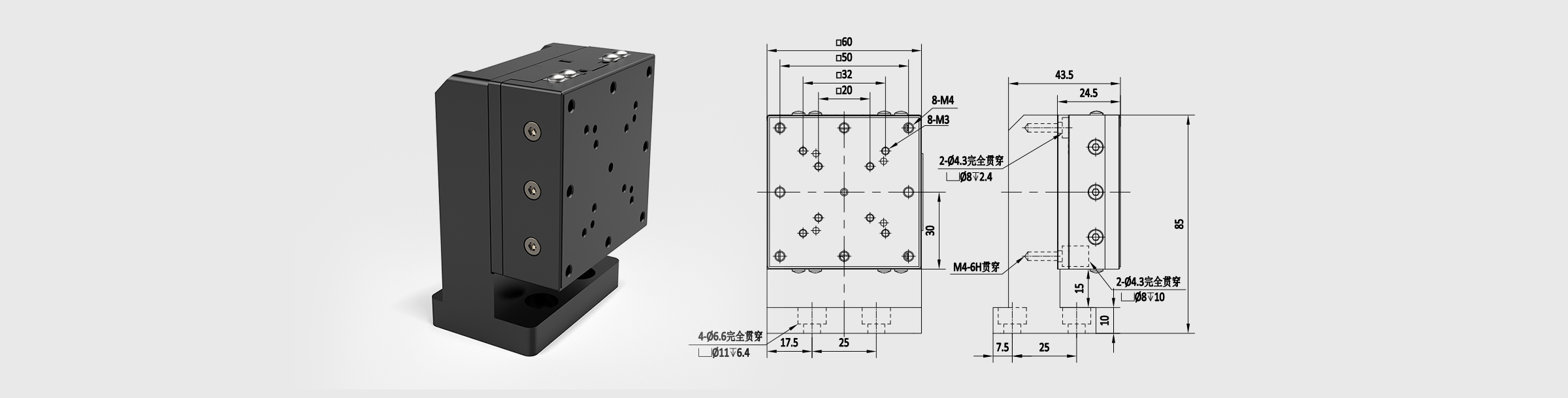 * 结构紧凑,可以和其他位移台直接叠堆成多轴应用