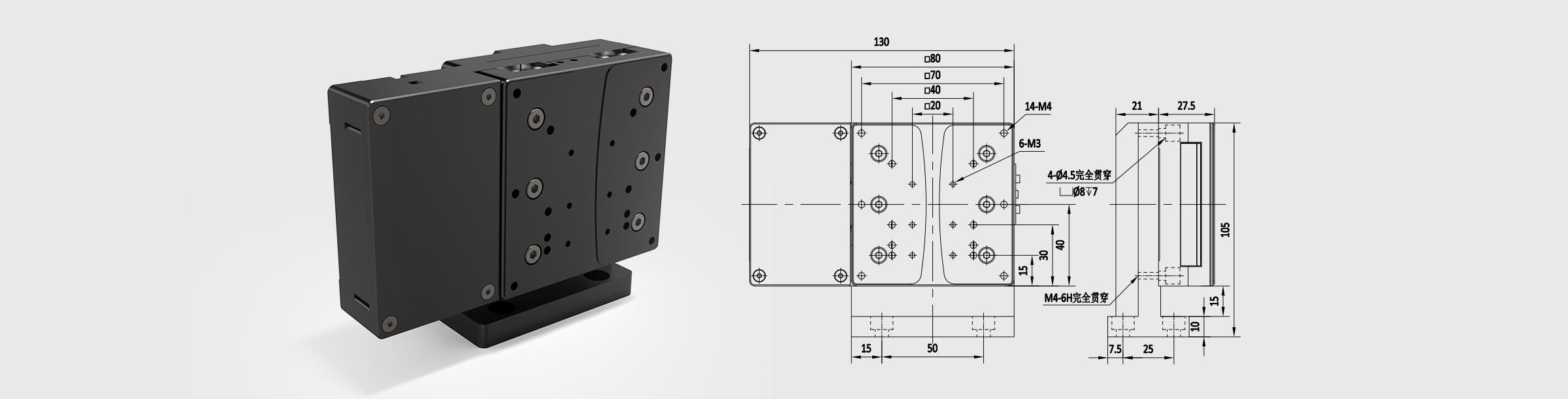 * 结构紧凑,可以和其他位移台直接叠堆成多轴应用