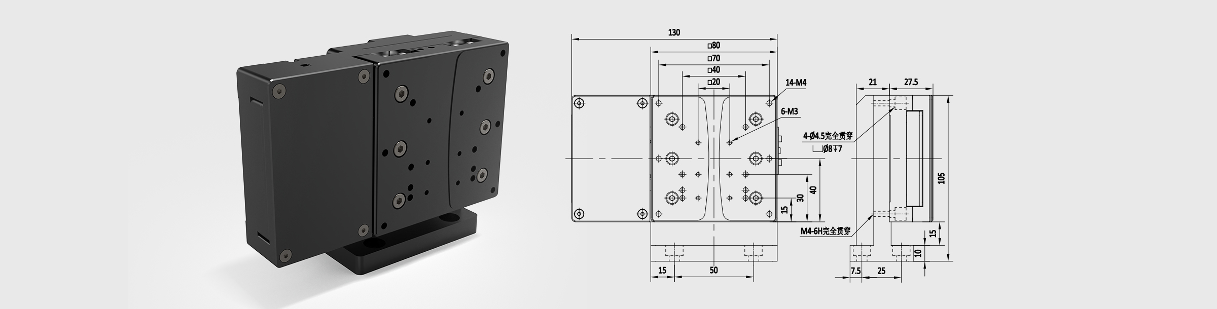 * 结构紧凑,可以和其他位移台直接叠堆成多轴应用