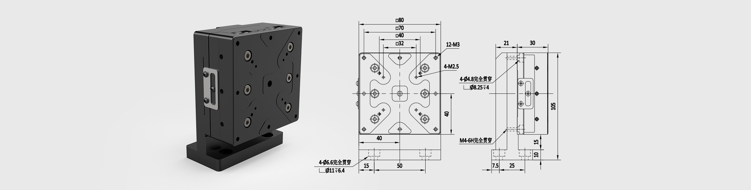 * 结构紧凑,可以和其他位移台直接叠堆成多轴应用
