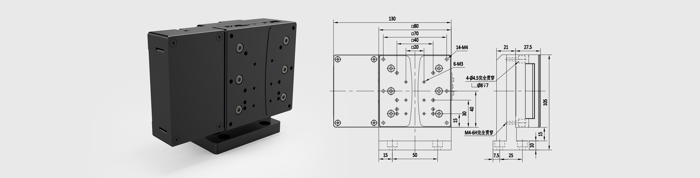 * 结构紧凑,可以和其他位移台直接叠堆成多轴应用