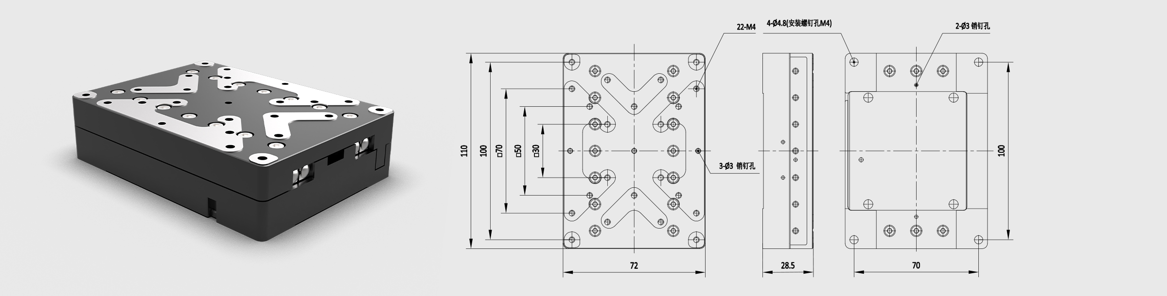 2. 采用不锈钢交叉滚柱导轨,具有高精度、高刚性,高线性度