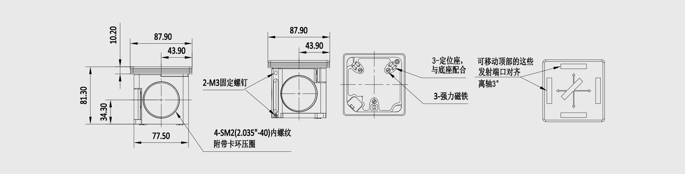 1. 可拆卸的荧光滤光片立方体