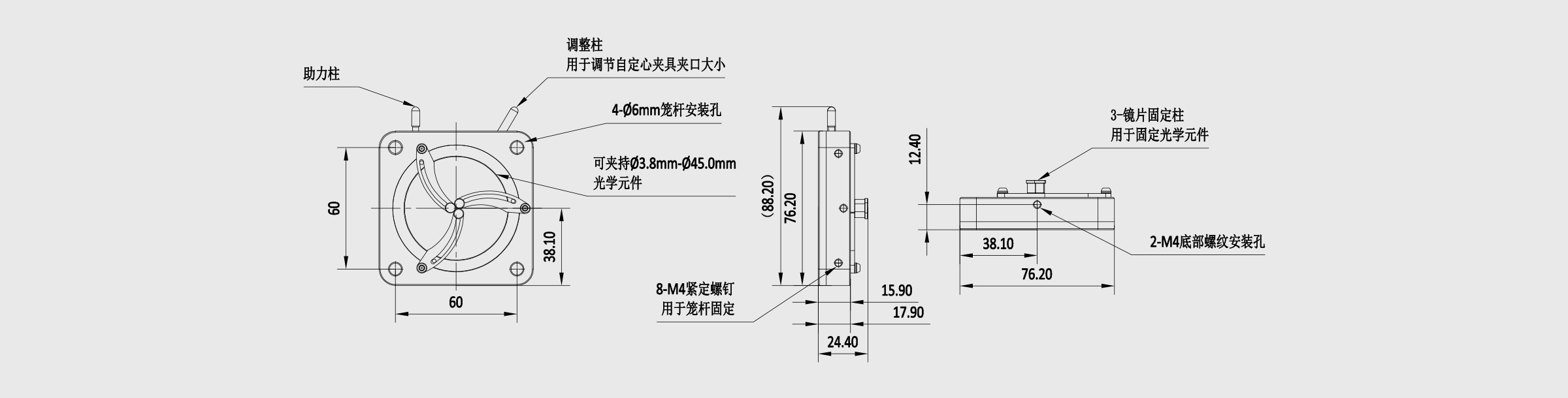 新品 60mm笼式系统自定心透镜安装座 夹持尺寸Φ3.8~45mm