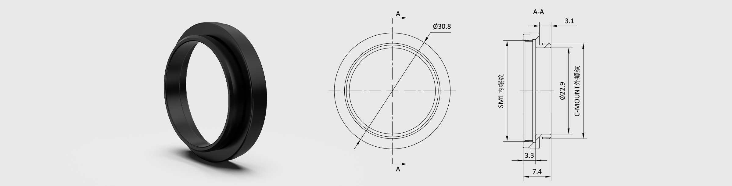 联合光科提供各种螺纹规格的内、外螺纹转接,材质为6061-T6铝合金,表面做黑色阳极氧化处理,可以在减少杂散光反射的同时增加螺纹的使用寿命。