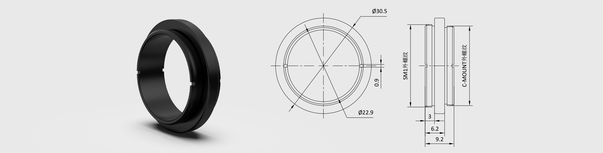 联合光科提供各种螺纹规格的内、外螺纹转接,材质为6061-T6铝合金,表面做黑色阳极氧化处理,可以在减少杂散光反射的同时增加螺纹的使用寿命。