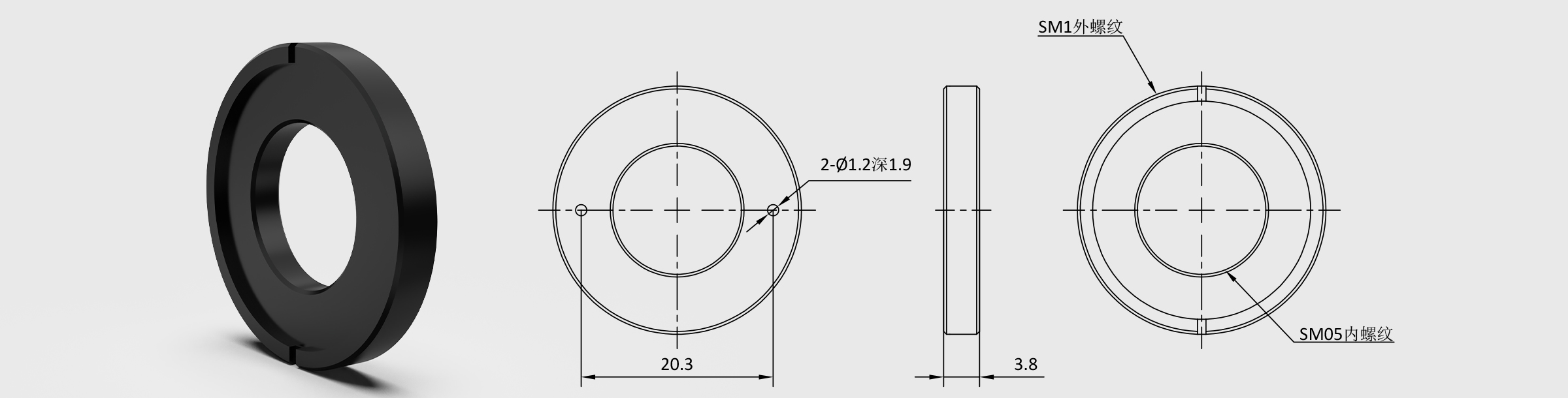 新品 螺纹转接件 外螺纹SM1 内螺纹SM05 厚度3.8mm