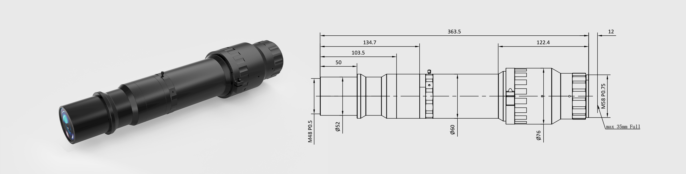 新品 大靶面远心镜头 3.0× 工作距离60mm 靶面35