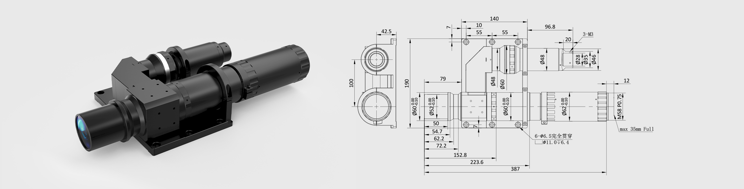 新品 大靶面远心镜头 5.0× 工作距离60mm 靶面35 同轴