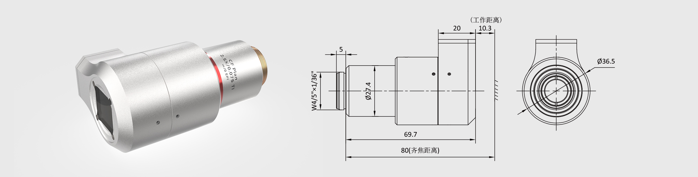 | 10 | 镜头尺寸 | Φ36.5×L 69.7mm | |
