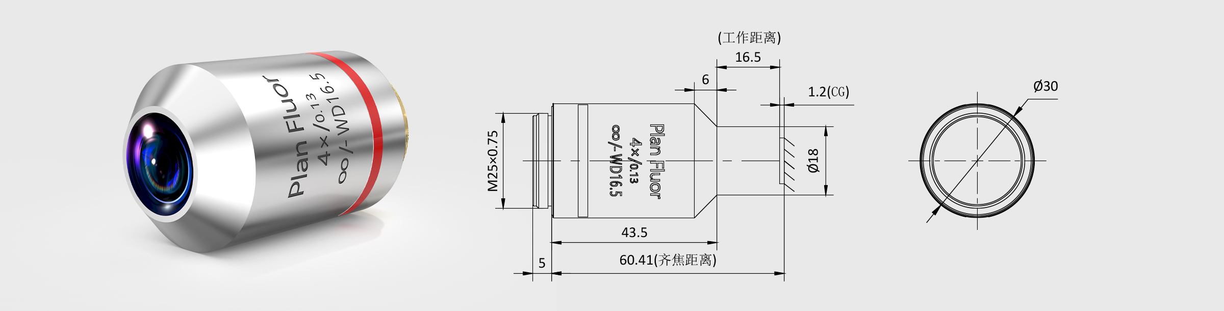 新品 4× 齐焦60mm平场半复消色差倒置生物物镜
