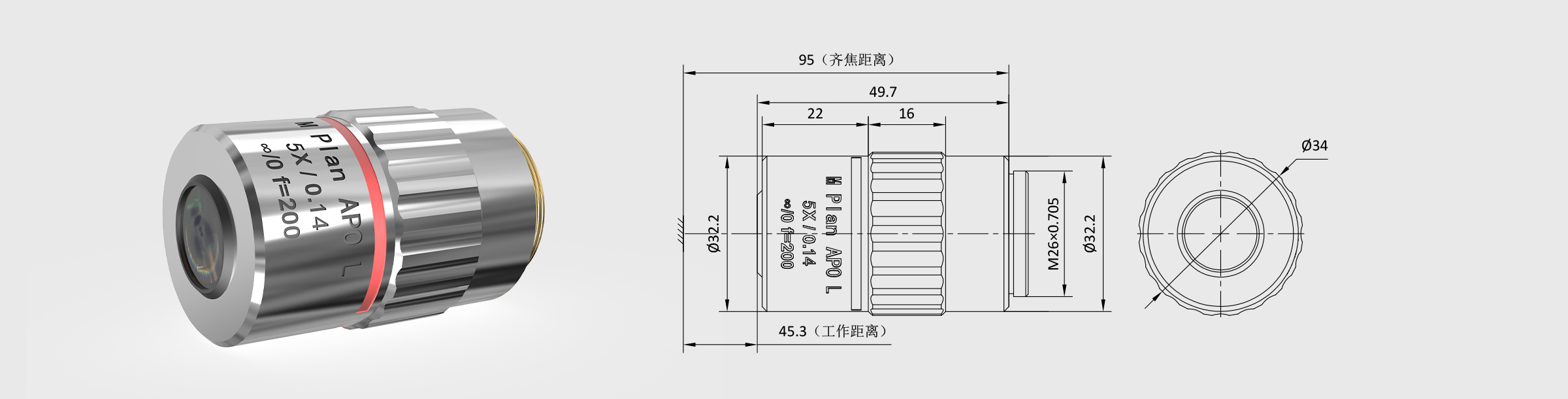 | 10 | 镜头尺寸 | Φ34×L 49.7mm |