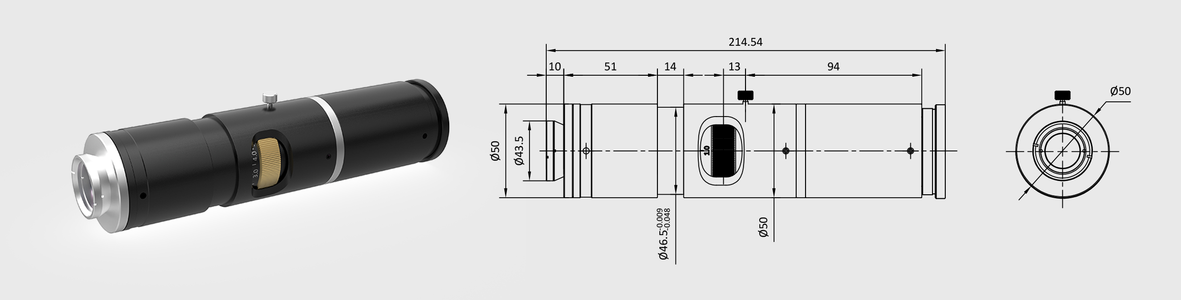 新品 1″ 7.35×连续变倍显微镜头 手动变倍主体