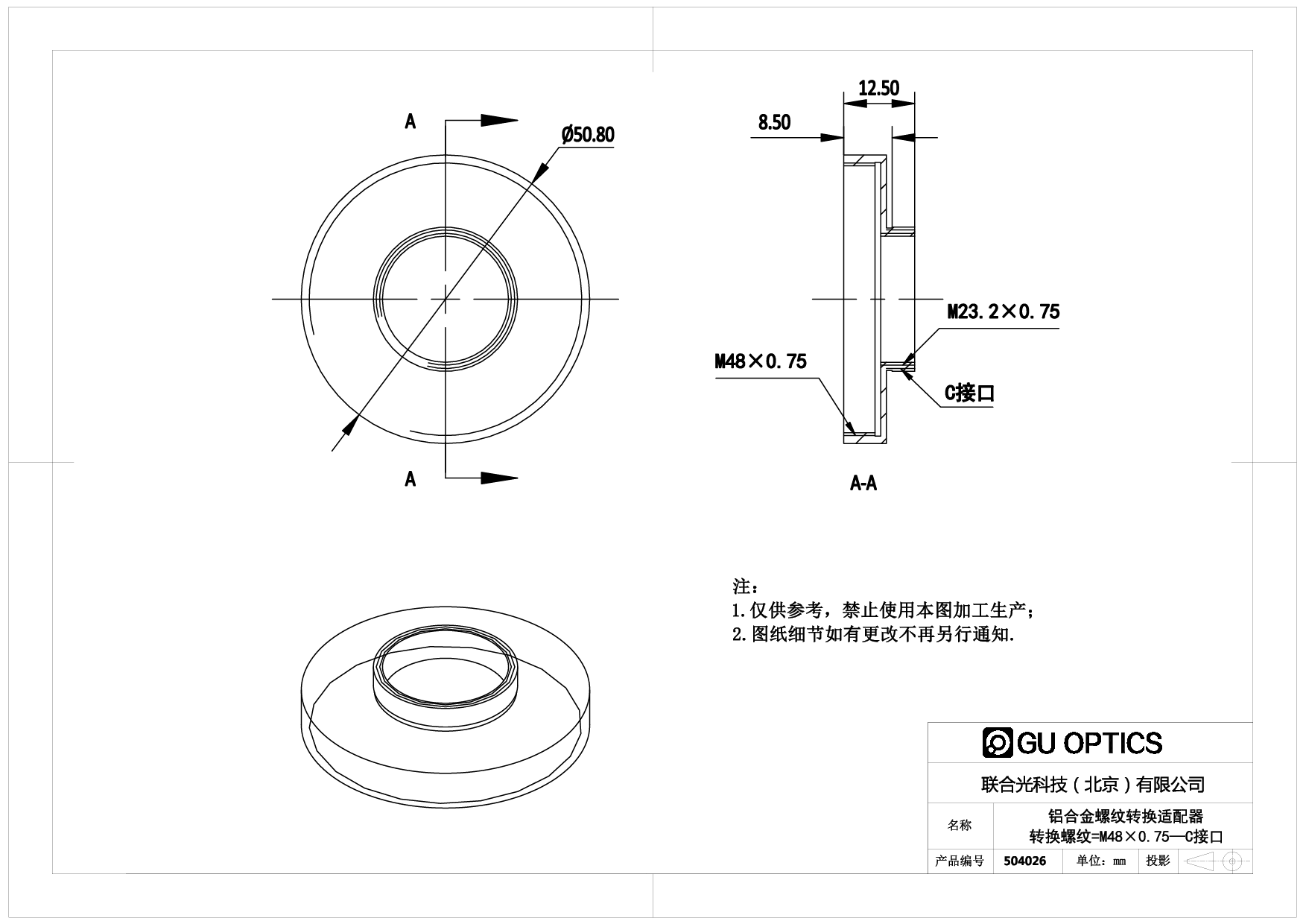 螺纹转换适配器 Ø50.8mm L=12.5mm