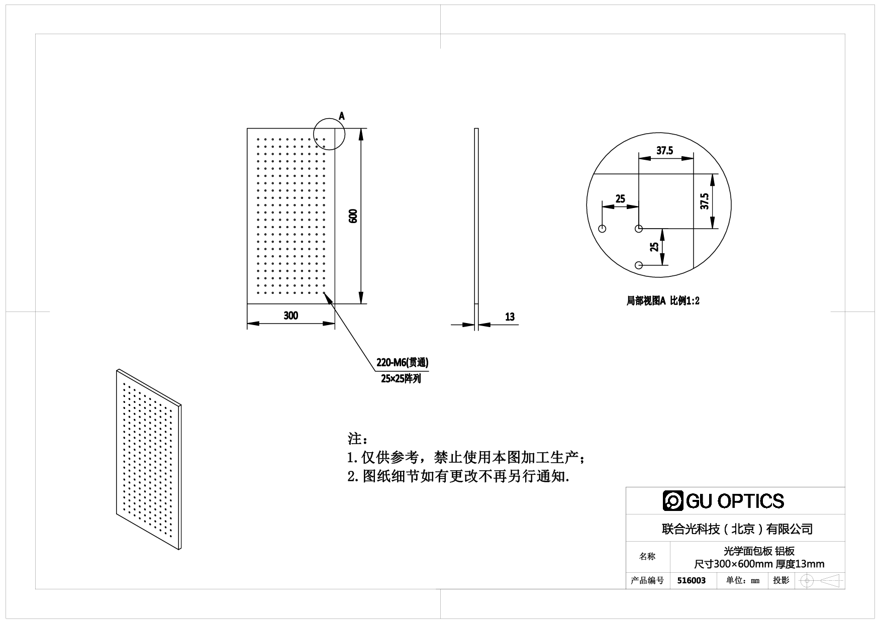 联合光科生产的平板(Aluminum Breadboard)采用铝合金精加工而成,重量轻,容易搬动,面阵列的标准孔距螺纹孔便于固定各种调整架,低反射黑色阳极氧化处理表面,美观耐用,我们接受特殊规格,特殊材料定做,为您定制满足您使用要求的光学平板,如您有任何问题或需求,都可以联系我们,我们将竭诚为您服务。