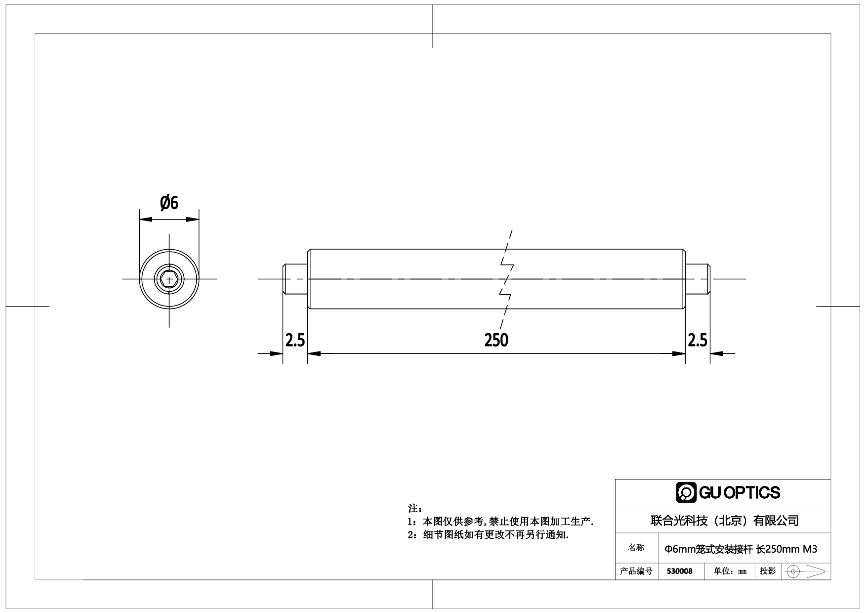 Φ6mm笼式安装接杆 长250mm M3