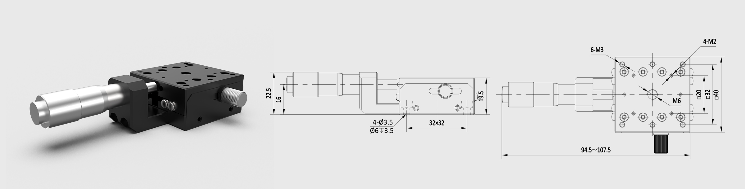 台面40x40mm 行程13mm 中间驱动 单轴精密位移台