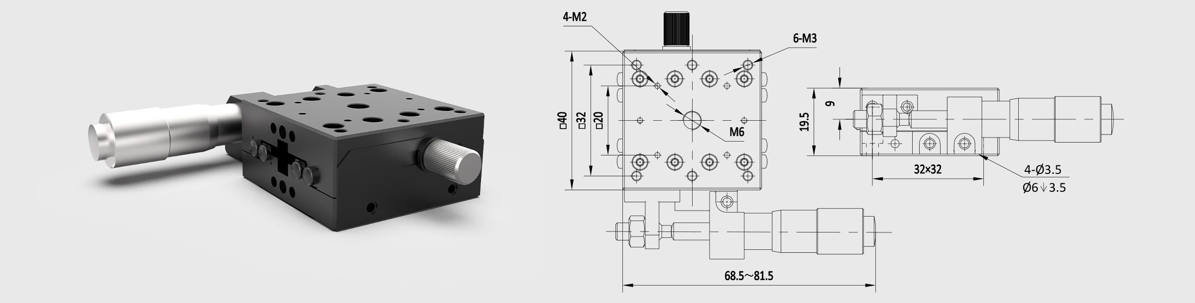 台面40x40mm 行程13mm 左侧驱动 单轴精密位移台