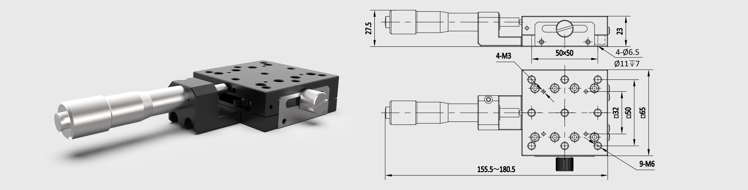 台面65x65mm 行程25mm 中间驱动 单轴精密位移台