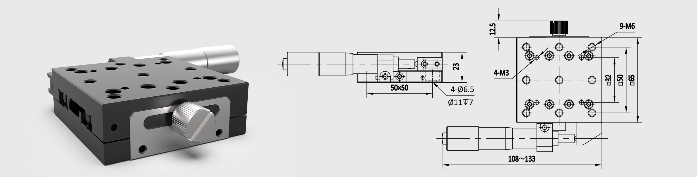台面65x65mm 行程25mm 右侧驱动 单轴精密位移台