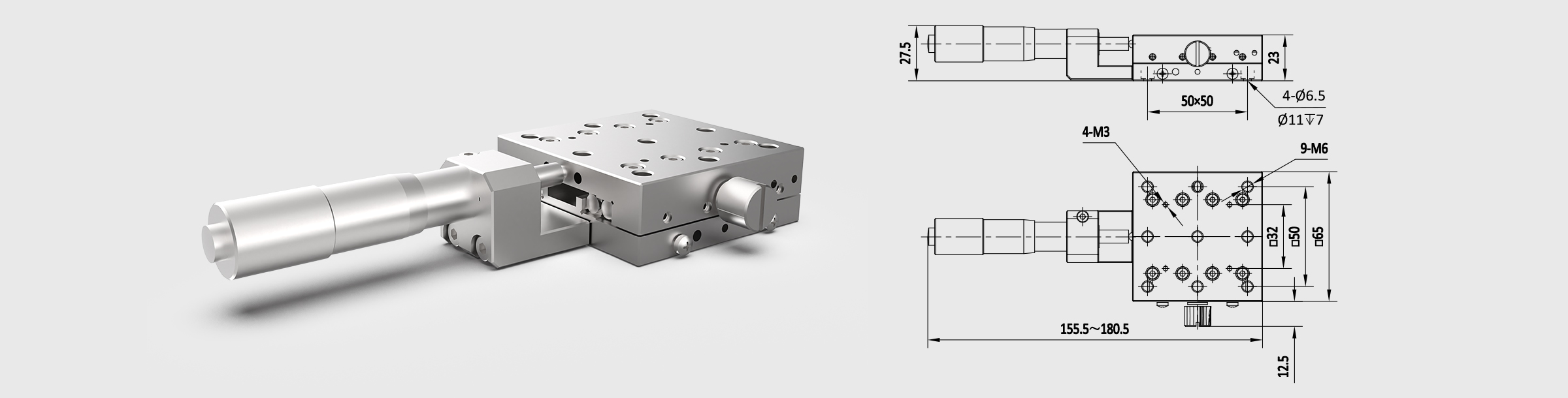台面65x65mm 行程25mm 中间驱动 不锈钢位移台