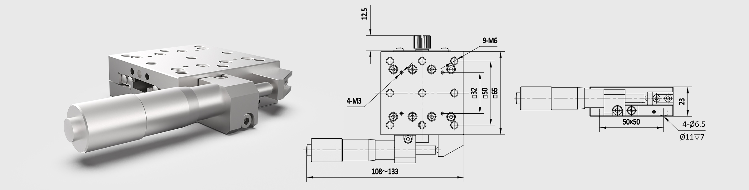 台面65x65mm 行程25mm 右侧驱动 不锈钢位移台