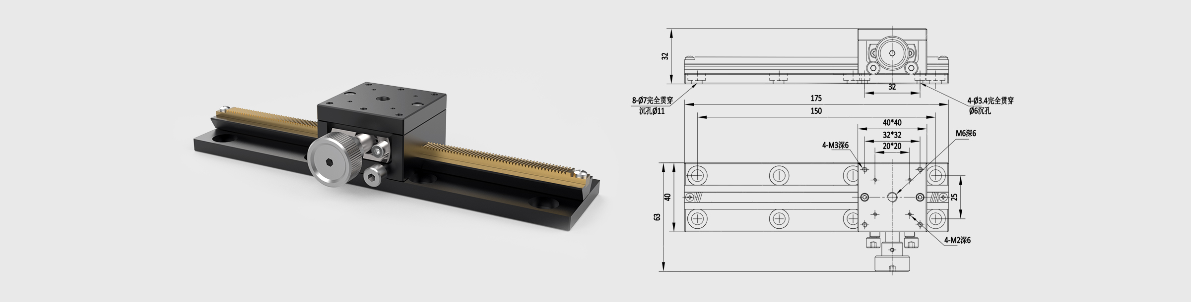 新品 燕尾槽位移台 台面尺寸=40×40mm 行程=±75mm