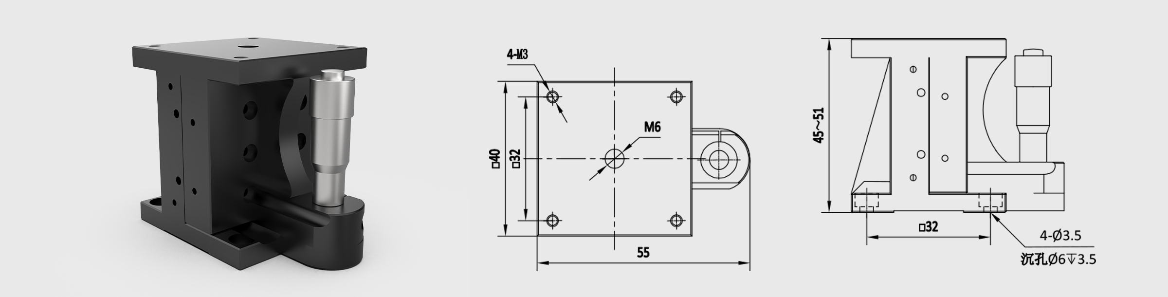 台面尺寸40x40mm 行程6mm 竖直驱动 垂直式移动平台
