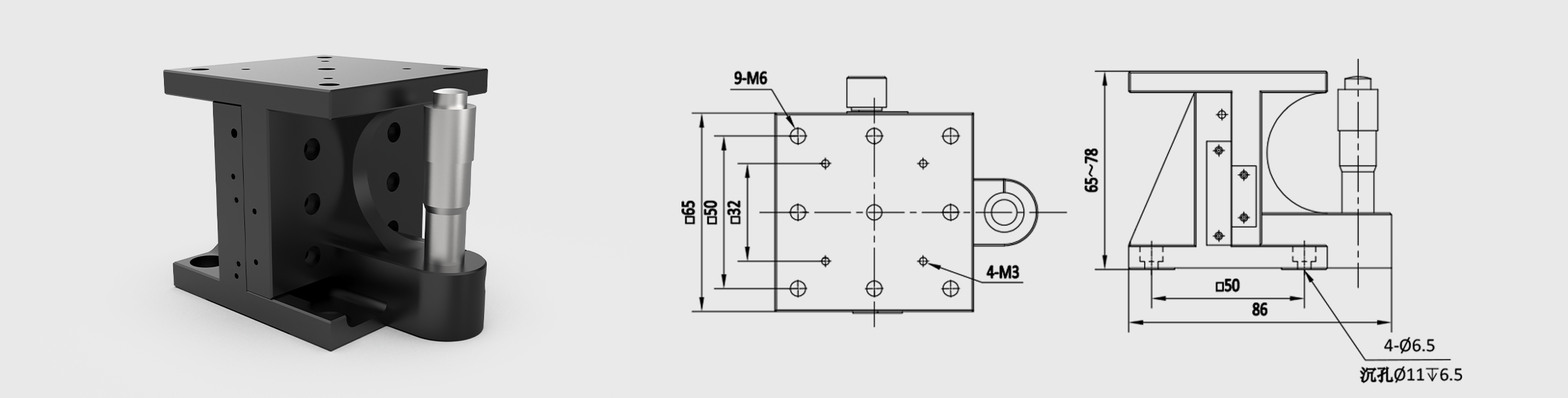 台面尺寸65x65mm 行程13mm 竖直驱动 垂直式移动平台