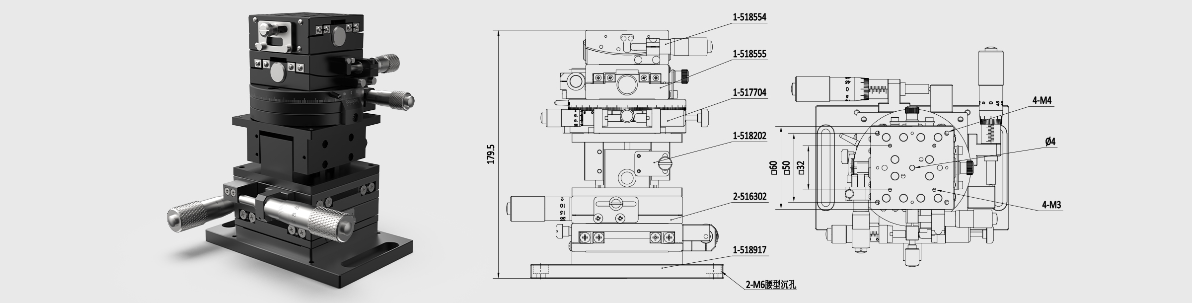 - 组合型号(组装顺序从下往上) 518917/516302/516302/518202/517704/518555/518554
