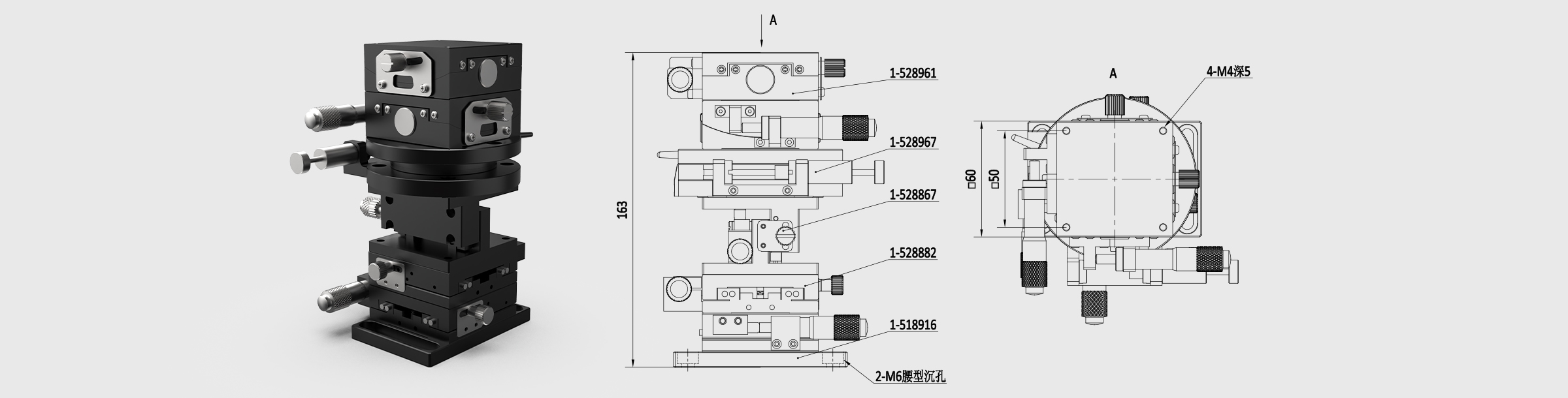 新品 六维位移台 台面尺寸60x60mm 旋转中心高度50mm 最大负载4.94kg
