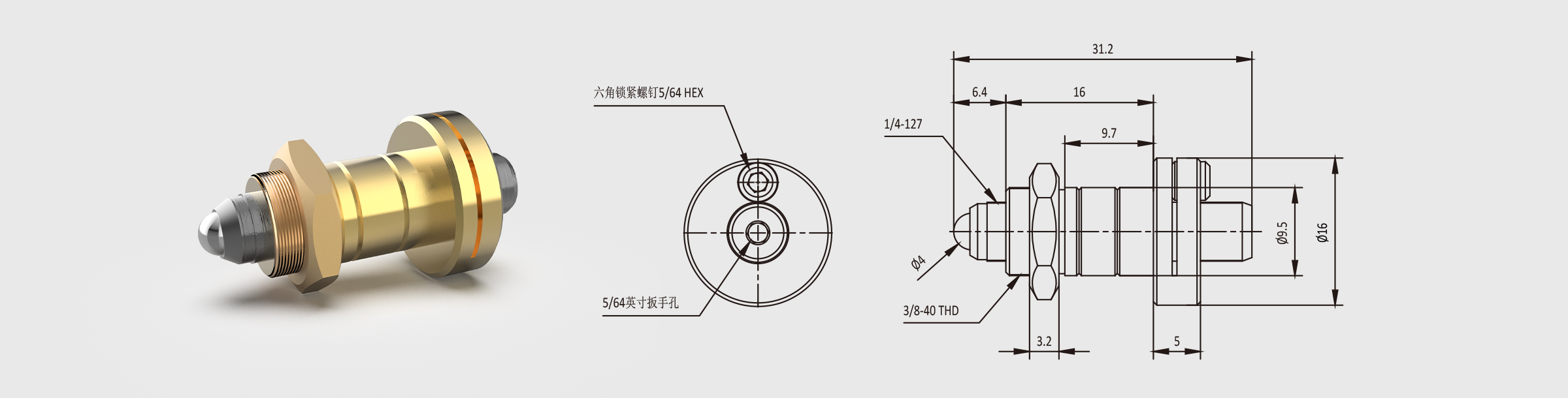 - 螺纹规格 1/4-127(超细牙)