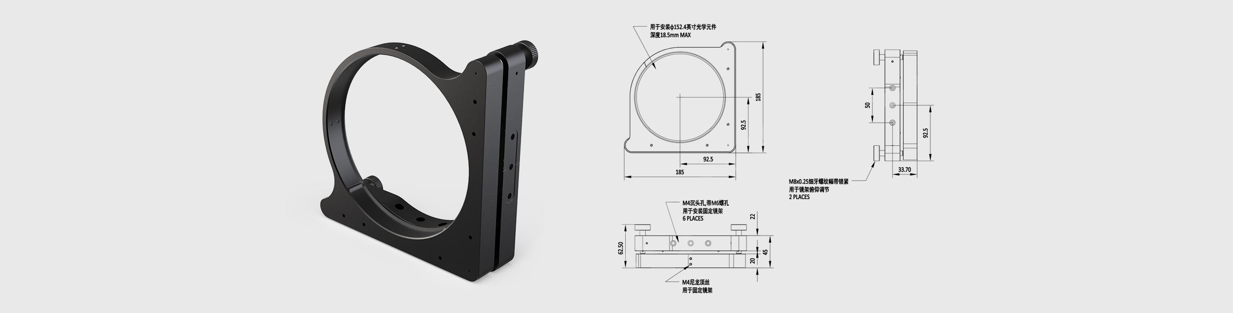 新品 大尺寸光学调整架 夹持尺寸152.4mm 顶丝固定 两轴调节