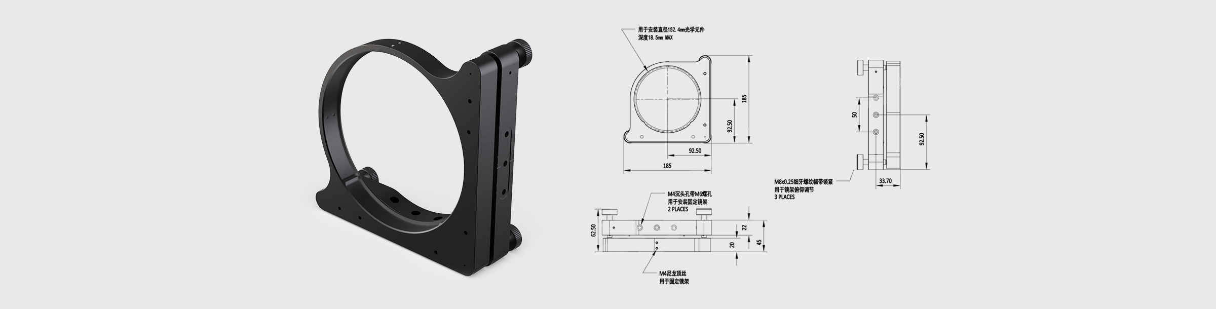 新品 大尺寸光学调整架 夹持尺寸152.4mm 顶丝固定 三轴调节