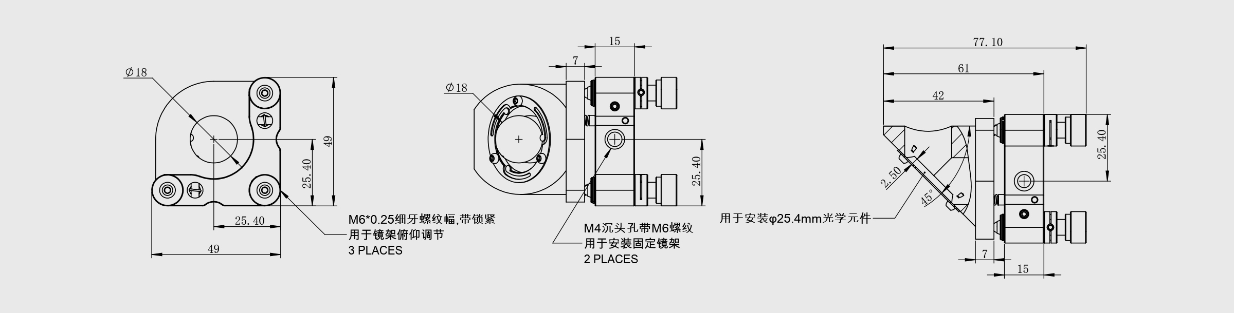 新品 45°反射光学架镜架 夹持尺寸=25.4mm 镜像